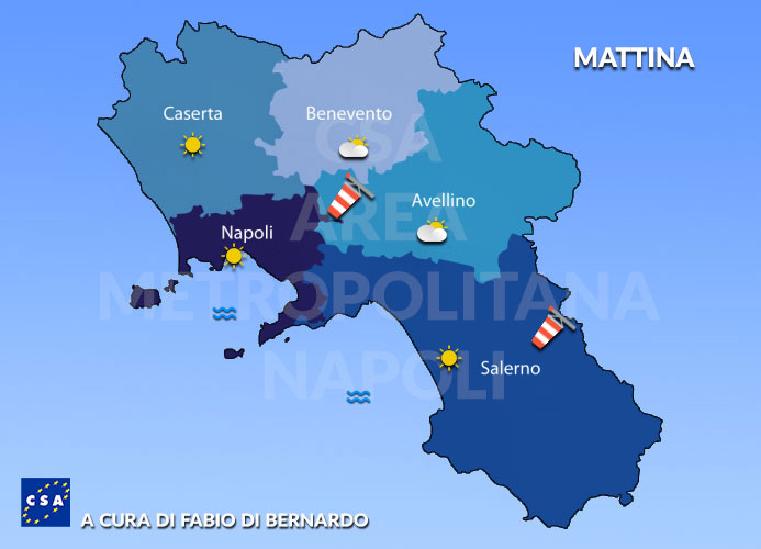 La giornata di Venerdì sarà praticamente identica a quella odierna, bello e soleggiato al mattino. Temporali convettivi durante il pomeriggio (ore 14:00 - 19:00) che si formeranno tra le province di Caserta e Benevento in spostamento lungo le coste, l'unica differenza rispetto ad oggi sarà la minore probabilità di raggiungimento delle coste.