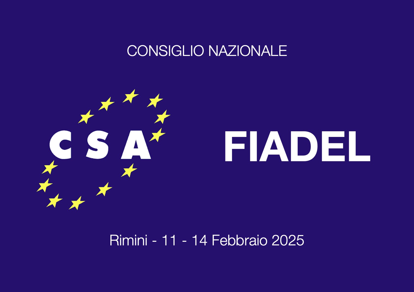 Dall"11 al 14 Febbraio si è tenuto a Rimini il Consiglio Nazionale Fiadel CSA che ha visto la rappresentanza di tutte le Regioni d'Italia e la partecipazione di diversi attori istituzionali: il video saluto del Ministro per la Pubblica Amministrazione Paolo Zangrillo, il video collegamento del Presidente dell’Aran dott. Antonio Naddeo, la presenza del Presidente dell’Anci e Sindaco di Napoli Prof. Gaetano Manfredi.