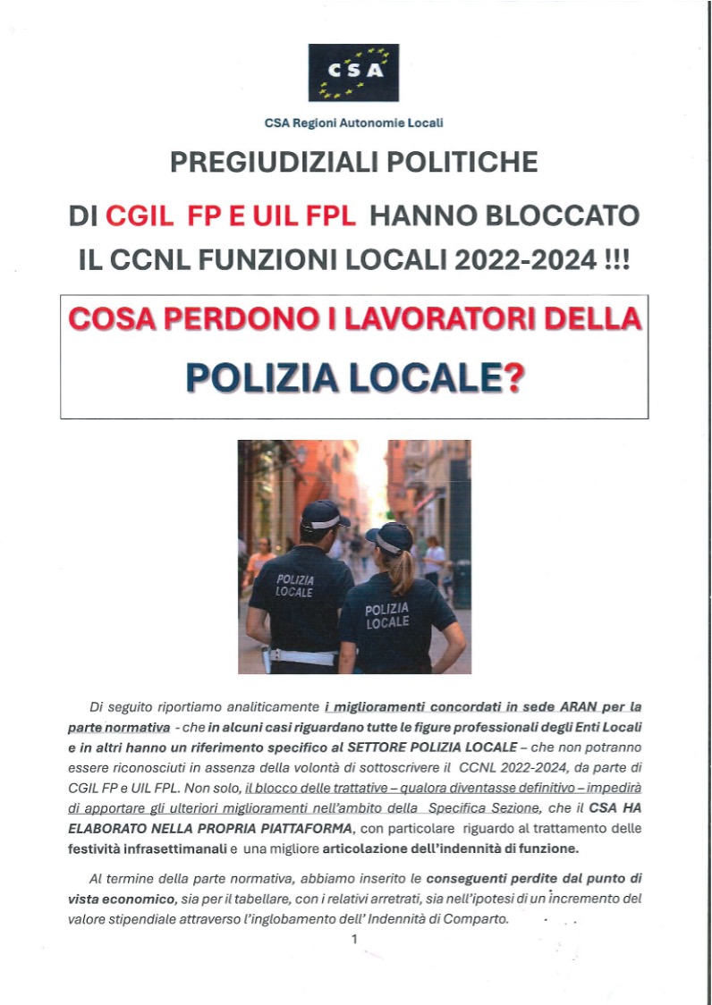 PREGIUDIZIALI POLITICHE DI CGIL FP E UIL FPL HANNO BLOCCATO IL CCNL FUNZIONI LOCALI 2022-2024 !!!